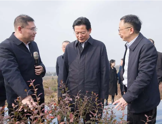 在秋錦山村,蔡邦銀一行實地查看了當地藍莓的種植情況,并就藍莓產量產值和市場銷售情況與相關負責人進行了深入交流。他要求,要從產業(yè)培育、精深加工等方面持續(xù)發(fā)力,不斷延伸藍莓產業(yè)鏈,進一步推動藍莓產業(yè)轉型升級,拓寬農民增收致富渠道,更好發(fā)揮項目聯農帶農的作用,為推進鄉(xiāng)村全面振興提供產業(yè)支撐。